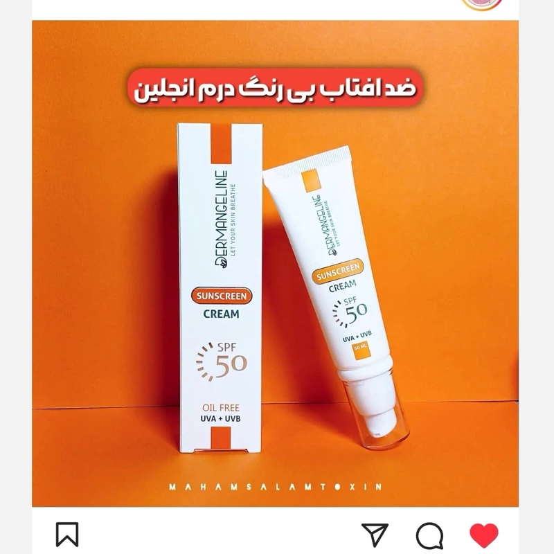 ضد آفتاب رنگی فاقد چربی درم انجلین بژ روشن